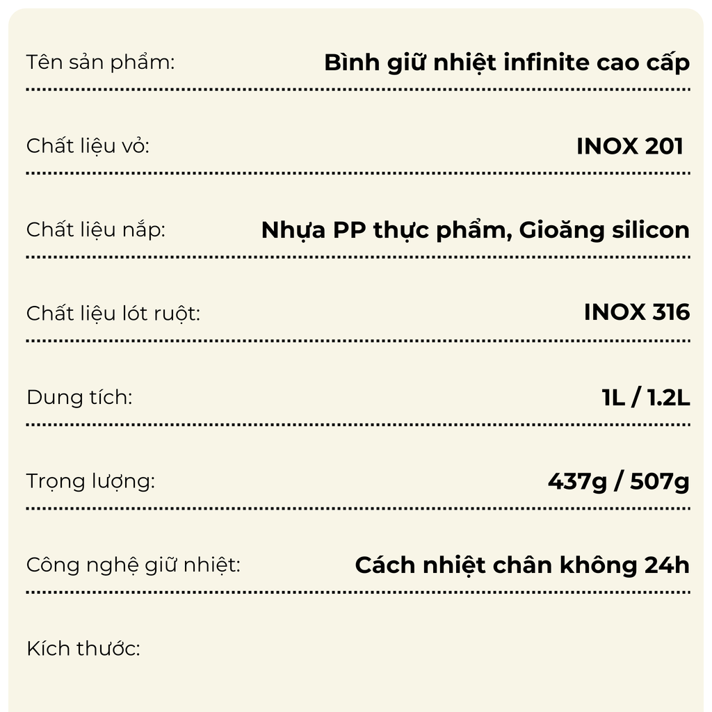 - Dung tích: 1L / 1.2L