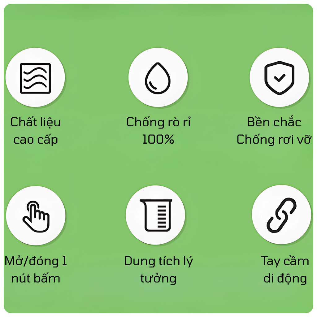 - Chất liệu nắp: Nhựa PP thực phẩm, gioăng silicon