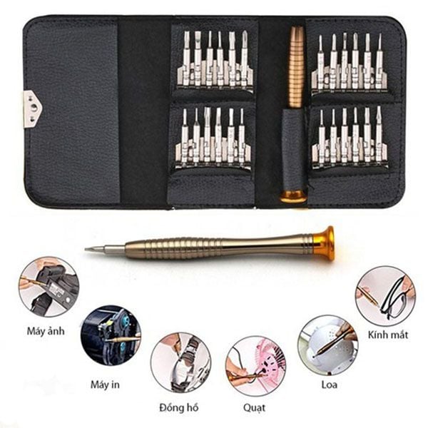 Tên sản phẩm: Bộ tua vít ví da sửa chữa linh kiện điện tử đa năng 25 đầu từ tính