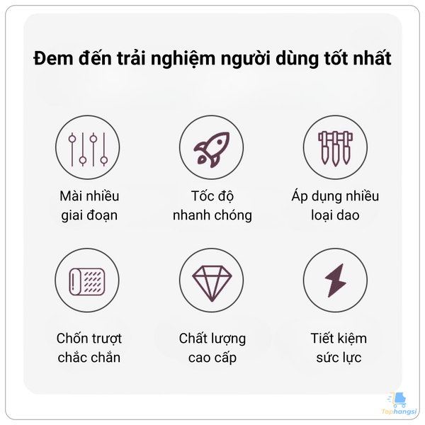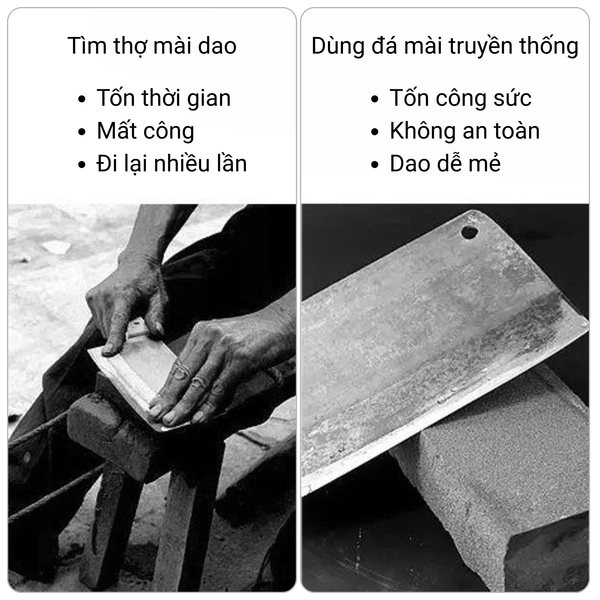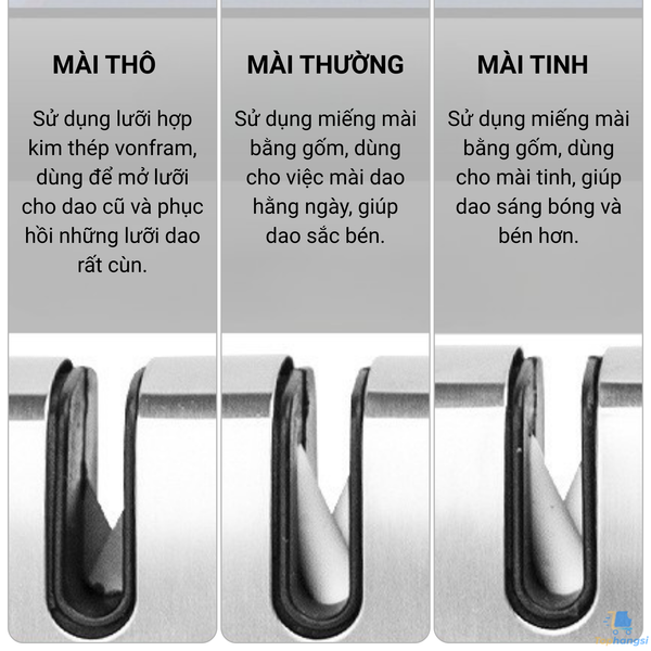 - Phạm vi sử dụng: Dao chặt xương, dao thái, dao gọt hoa quả, lưỡi kéo đặt vừa khe mài, ...