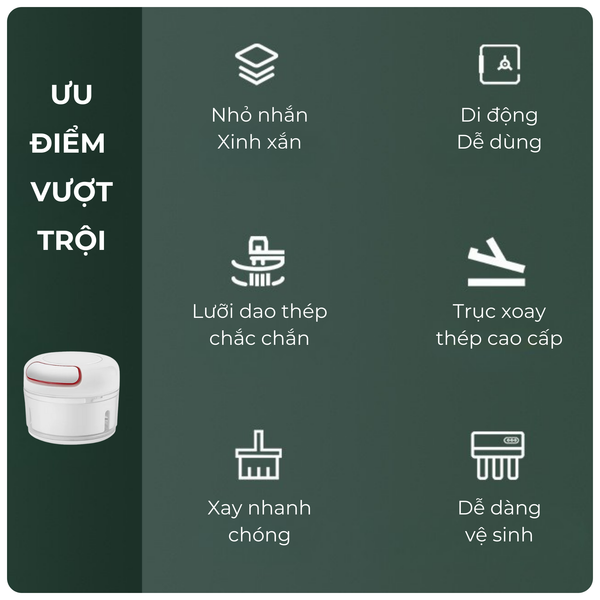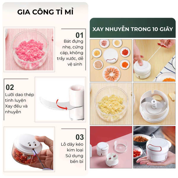 - Công dụng: xay tỏi, ớt, thịt, đồ ăn dặm, ...