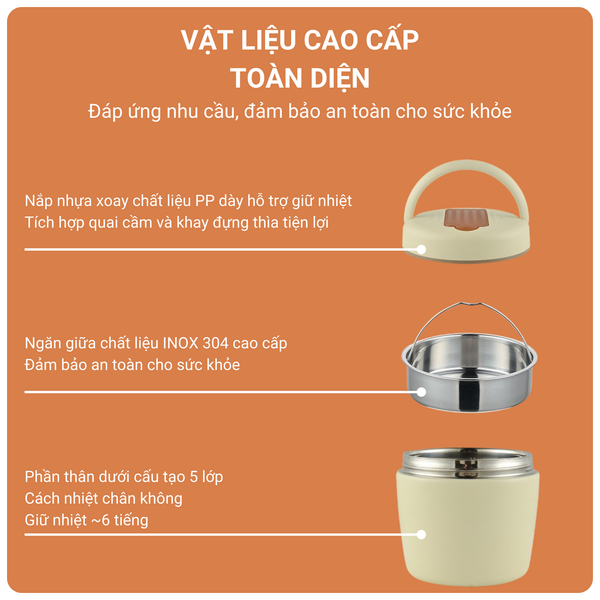 Thời gian giữ nhiệt: 4 - 6 tiếng