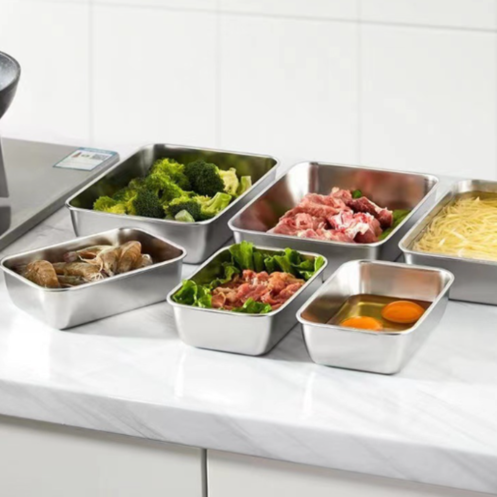 - Chất liệu: Inox 304, An toàn tẩy rửa, Bảo quản lạnh an toàn, Có nắp