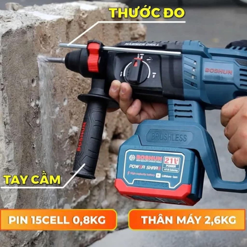 - 3 chế độ khoan: khoan, khoan đục, đục