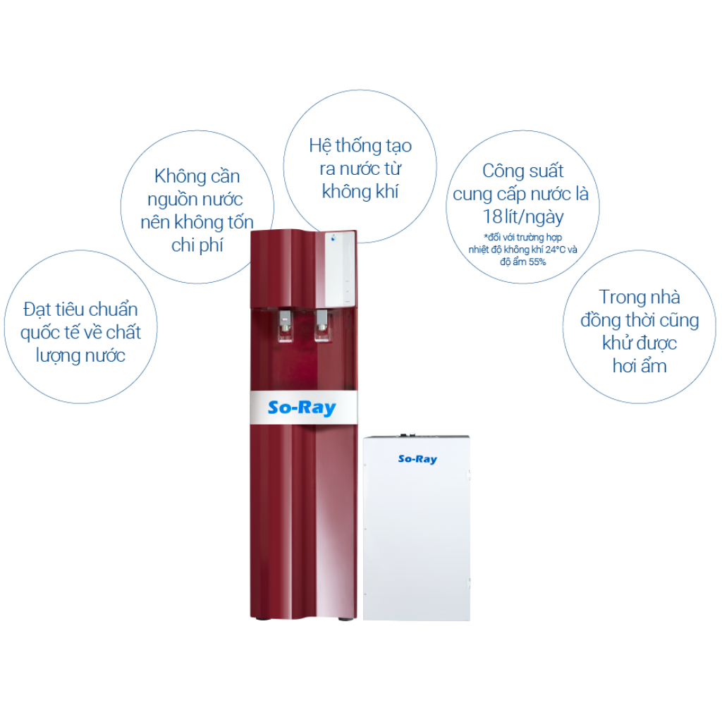 - Công suất sản xuất: 20L / ngày (ở nhiệt độ 27 ℃, độ ẩm 75%)
